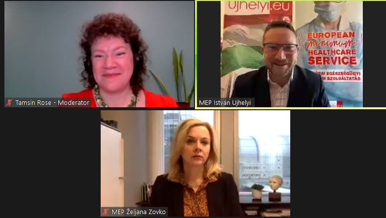 [Launch of BREATHE Vision for 2030. Tamsin Rose, moderator; MEP István Ujhelyi (S&D, Hungary); MEP Željana Zovko (EPP, Croatia)]
