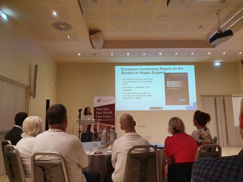 Valeria Ramiconi, EFA’s Project Manager presented the report during a side-event organised by the International Alliance of Dermatology Patient Organizations (GlobalSkin) on 7th September to an audience of international patient representatives.
