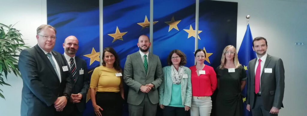 From left to right: Markus Kujawa (European Doctors, CMPE), Christian Horemans (Association Internationale de la Mutualité, AIM), Zorana Andersen (European Respiratory Society, ERS), Virginijus Sinkevicius, Commissioner for Environment, Anne Stauffer (Health and Environment Alliance, HEAL), Isabel Proaño (European Federation of Allergy and Airways Diseases Patient’s Associations, EFA), Sophie Perroud (HEAL) and Matteo Barisione (European Public Health Alliance, EPHA).