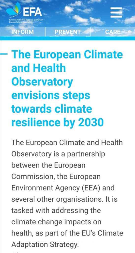 In 2022, EFA followed closely the implementation of the 2021 EU strategy on Adaption to Climate Change and brought the patient perspective to EU and WHO climate change considerations, urging that mitigation measures must be coupled with effective adaptation policies.EFA celebrated the first anniversary of the European Climate and Health Observatory, especially the 2021-2022 workplan on studying how heat stress might impact pollen.