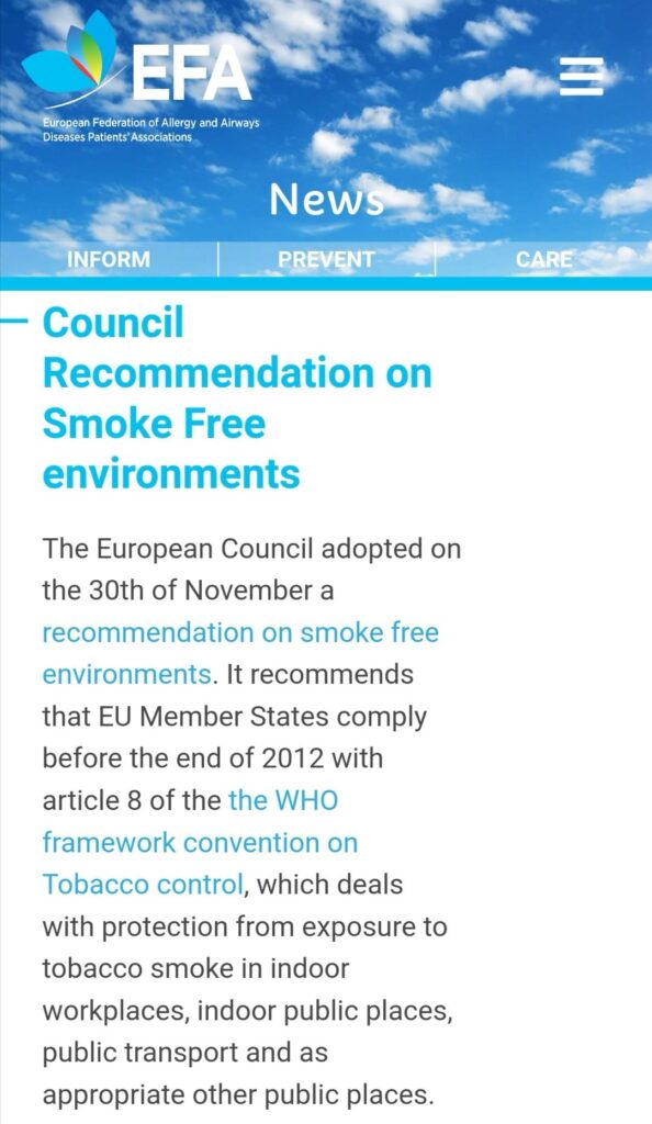 EFA welcomed the European Council Recommendations on smoke free environments to Members States