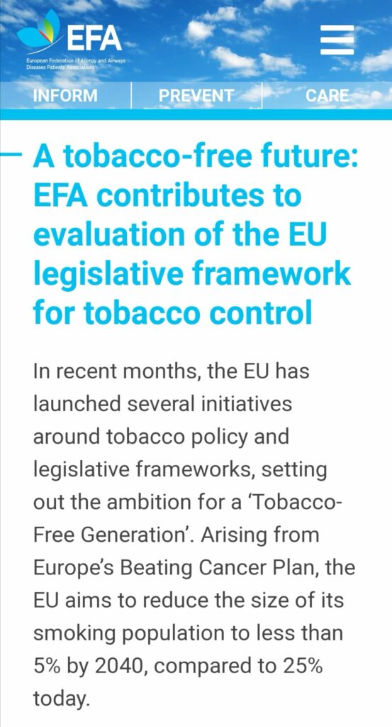 EFA also continued working closely with our partner the European Network for Smoking Prevention and Control (ENSP) as associate member.