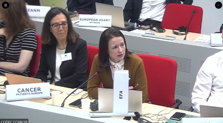 During the EC stakeholder dialogue on the legislative proposals, EFA Director of Policy and Communications Isabel Proaño encouraged the Commission to reinforce the definition of unmet medical needs to reflect disease severity, to maintain the printed package leaflet in medicines, and to cascade information of the novel Environmental Risk Assessment (ERA) to the patient to inform their choices regarding sustainability.