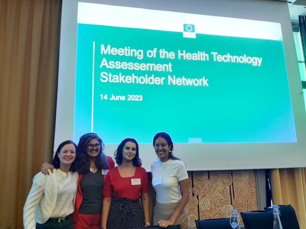 From left to right, Isabel Proaño (Director of Policy and Communications at EFA), Maya Mathews (European Commission Head of Unit of Unit in charge of HTA at DG SANTE), Julie Spony (Policy Officer at European Patients’ Forum) and Rosa Castro (Senior Policy Manager at European Public Health Alliance) during the first meeting of the HTA Stakeholder network in June.